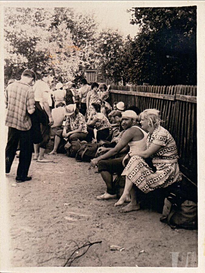 Participants of Club of Creative Youths "Suchasnyk" while traveling Ukraine. In the foreground is Alla Horska. 1963
