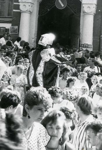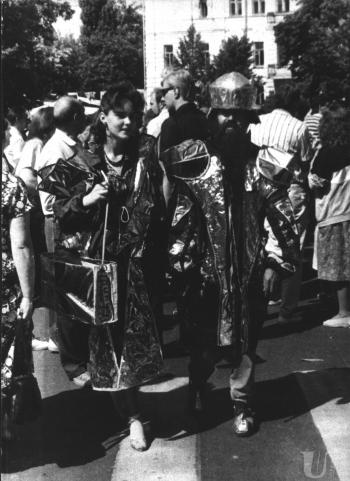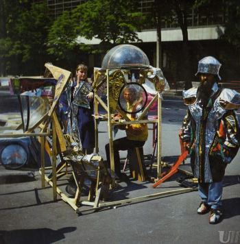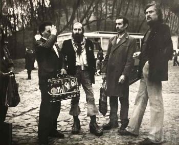 Andriyivskyy Descent. The Art Week. Right to left: Volodymyr Pasivenko, Volodymyr Yevtusheskyi, Fedir Tetynych (Frypulia). 1984