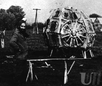 Fedir Tetianych near the biotechnosphere in the Kniazhychi village in Kyiv Oblast. 1980s