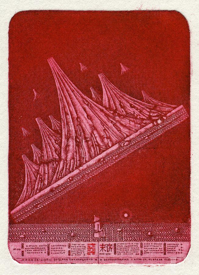 Вей-цзі. [Гексаграмма 64: Ще не кінець.] Екслібрис Богдана Пікулицького. Аркуш 12 циклу «І-цзін»