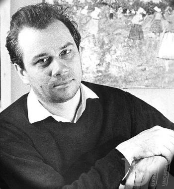 Віктор Зарецький на фоні автопортрету 1980 року. 1987